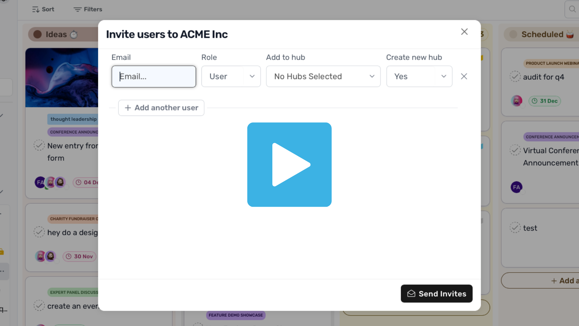 Invite members or guests to your hub so your team and external collaborators can join instantly.